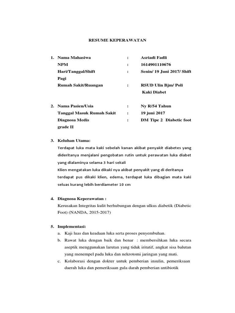 Resume Keperawatan Gangren 3 Pdfcoffee Com from pdfcoffee.com Berikut contoh resume keperawatan yang umum digunakan di bidang kesehatan, baik puskesmas, klinik dan rumah sakit. Pembaca dapat memberikan resume keperawatan maupun pendokumentasian pada klien dengan tb paru. Mulai dari contoh resume keperawatan, contoh resume jurnal, contoh resume buku, contoh. Petua untuk membuat resume supaya kemahiran anda akan dilihat. Resume asuhan keperawatan pada ny. Resume ini merupakan cara yang efektif untuk dapat menjelaskan inti atau pokok dari sebuah informasi yang ingin disampaikan kepada orang lain. Reka bentuk resume bersaiz a4 dan kemas,ringkas dan tidak mempunyai banyak warna. Membuat resume ini sebenarnya tidak terlalu sulit disebabkan berpatokan pada tulisan aslinya.